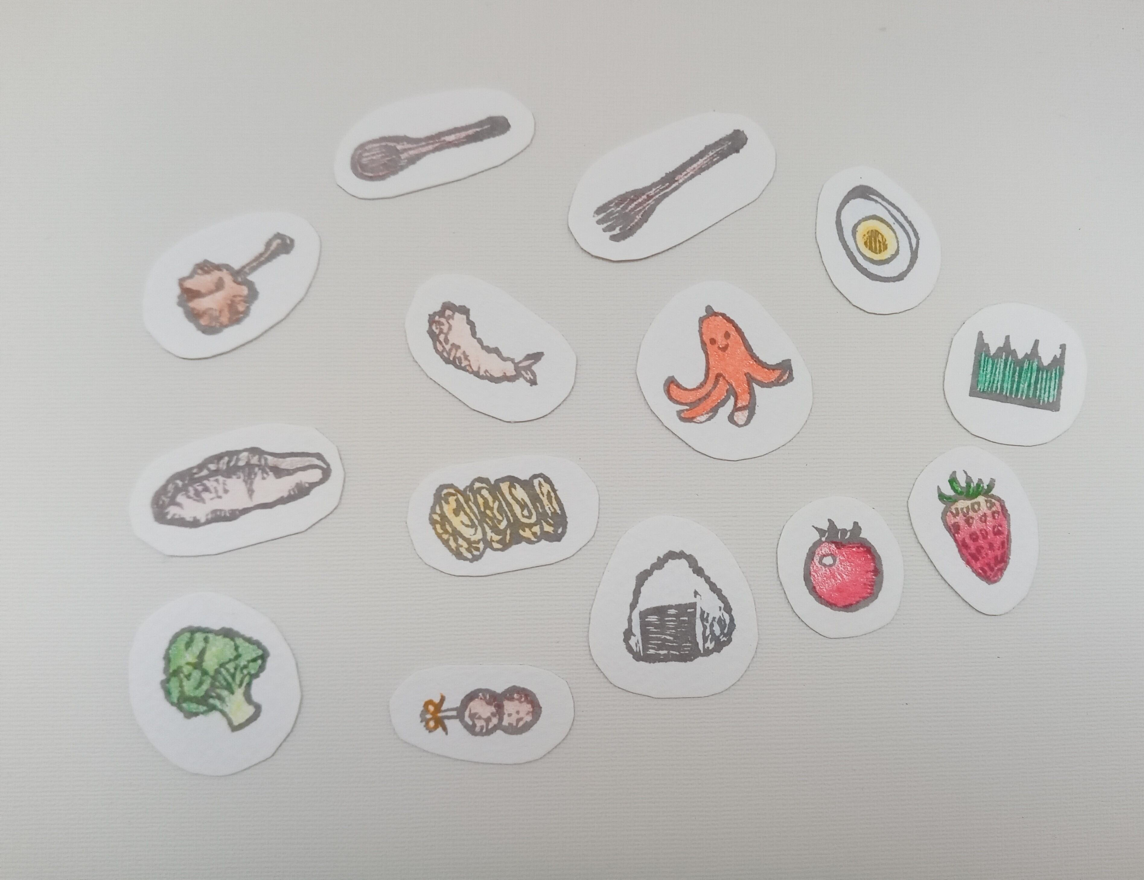消しゴムはんこで一枚ずつ手刷りで作ったシールセットです。