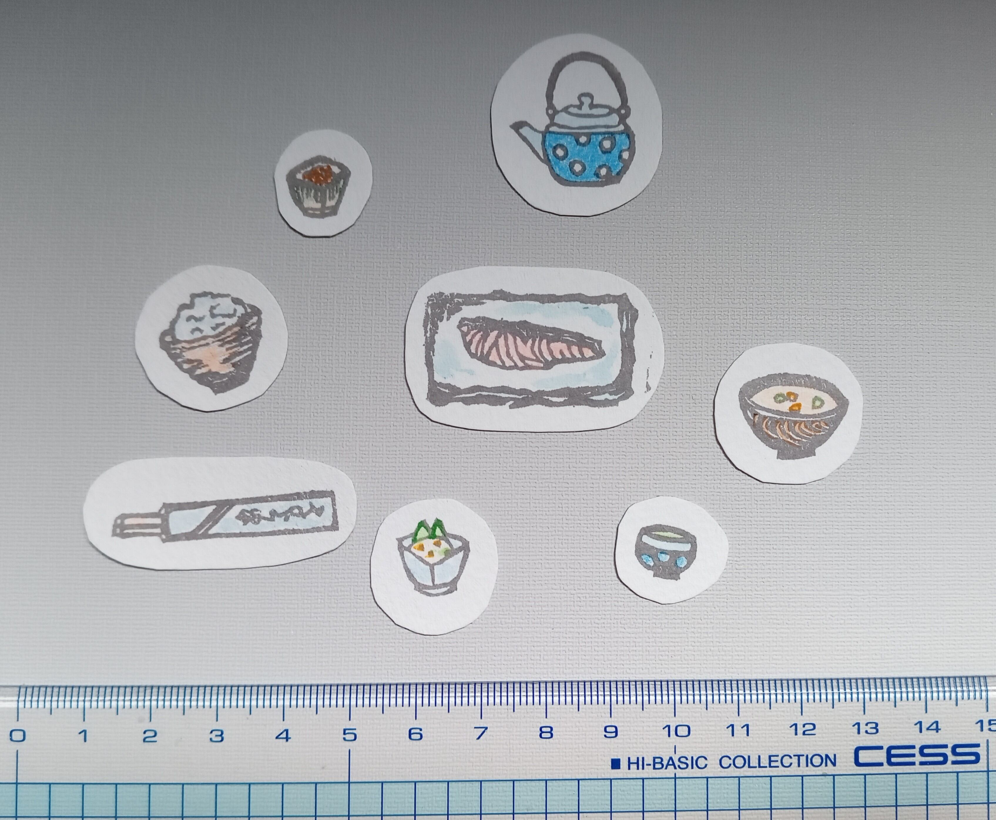 消しゴムはんこで一枚ずつ手刷りで作ったシールセットです。